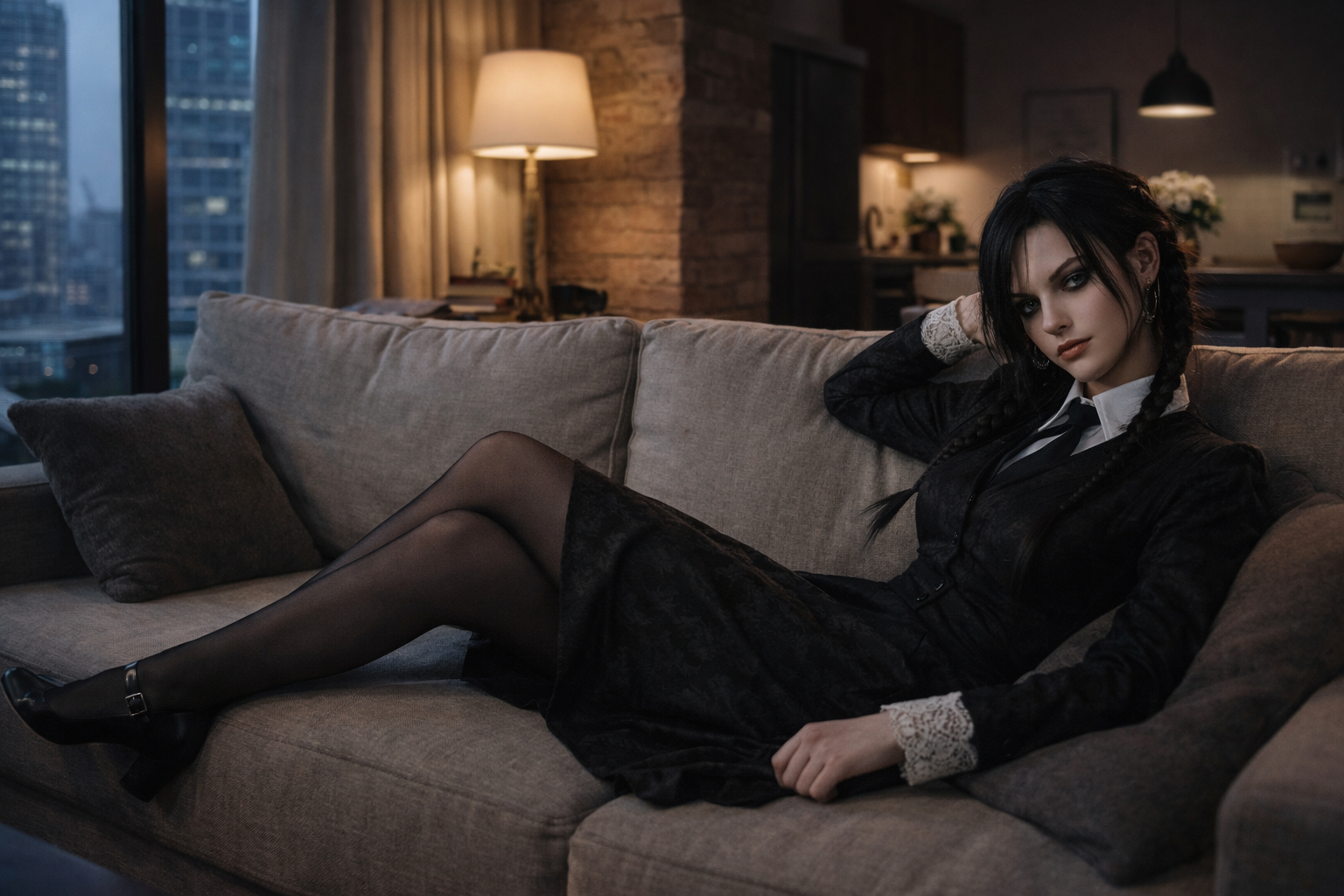 Soft smoky shadow with subtle liner for a refined gothic touch.